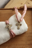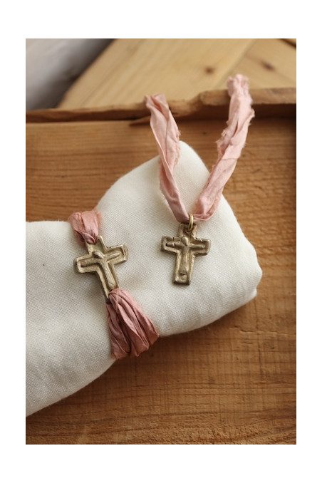 • Pulsera rústica de cruz en latón y en plata. Hecha artesanalmente en España por Sandra Bellew.