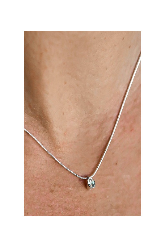 Diamante natural en láminas de forma redondeada e irregular con un diámetro aproximado de de 0,75cm. La cadena de plata puede ser de 40 ó 45cm (haznos saber tu preferencia al finalizar la compra en observaciones)