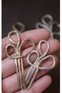 Peineta en plata o latón (dorado) con diseño original que recuerda un trébol.