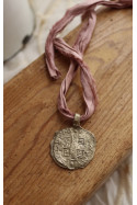 Medallas realizadas artesanalmente por lo que puede haber ligeras diferencias entre unas y otras. La cinta de seda también puede variar con respecto a la foto según los tonos disponibles, haznos saber si tienes alguna preferencia.