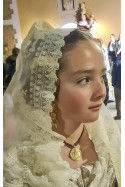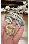 Medalla rústica de la Virgen de los Desamparados con cinta de seda.