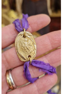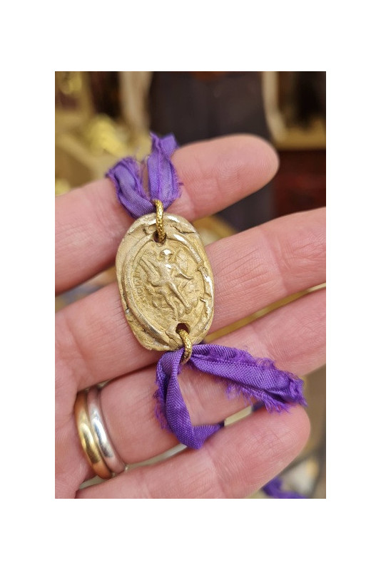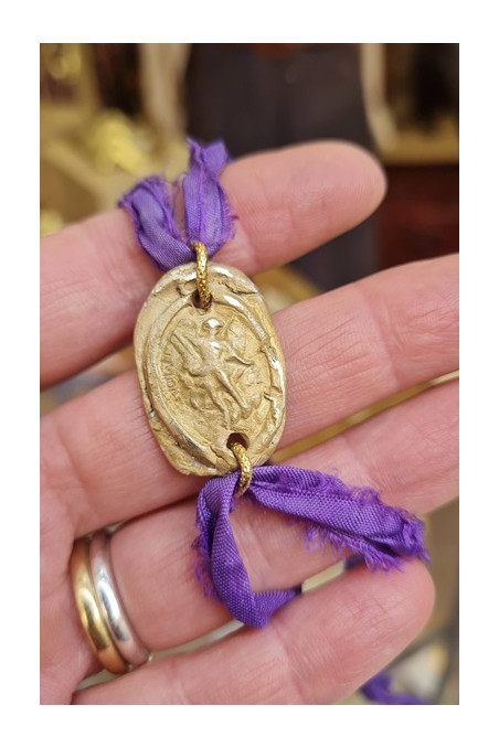 Medalla rústica de San Miguel con cinta de seda.