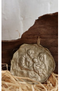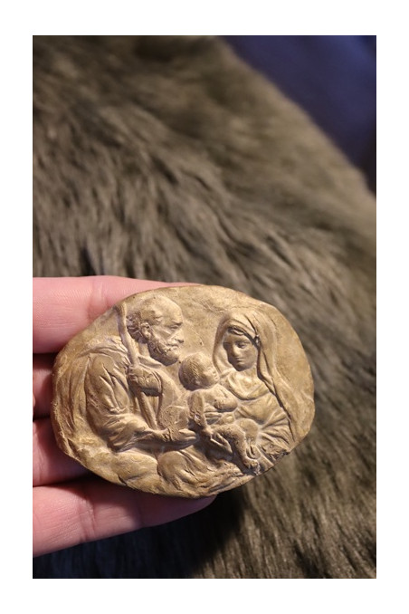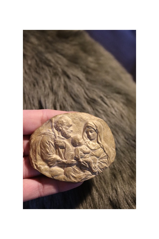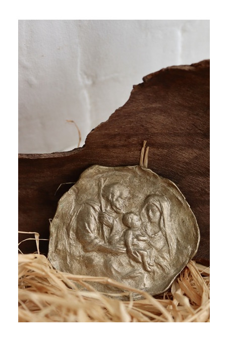 Medalla rústica de la Sagrada Familia con cinta de seda.