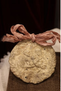 Medalla rústica de Sagrada Familia con cinta de seda.